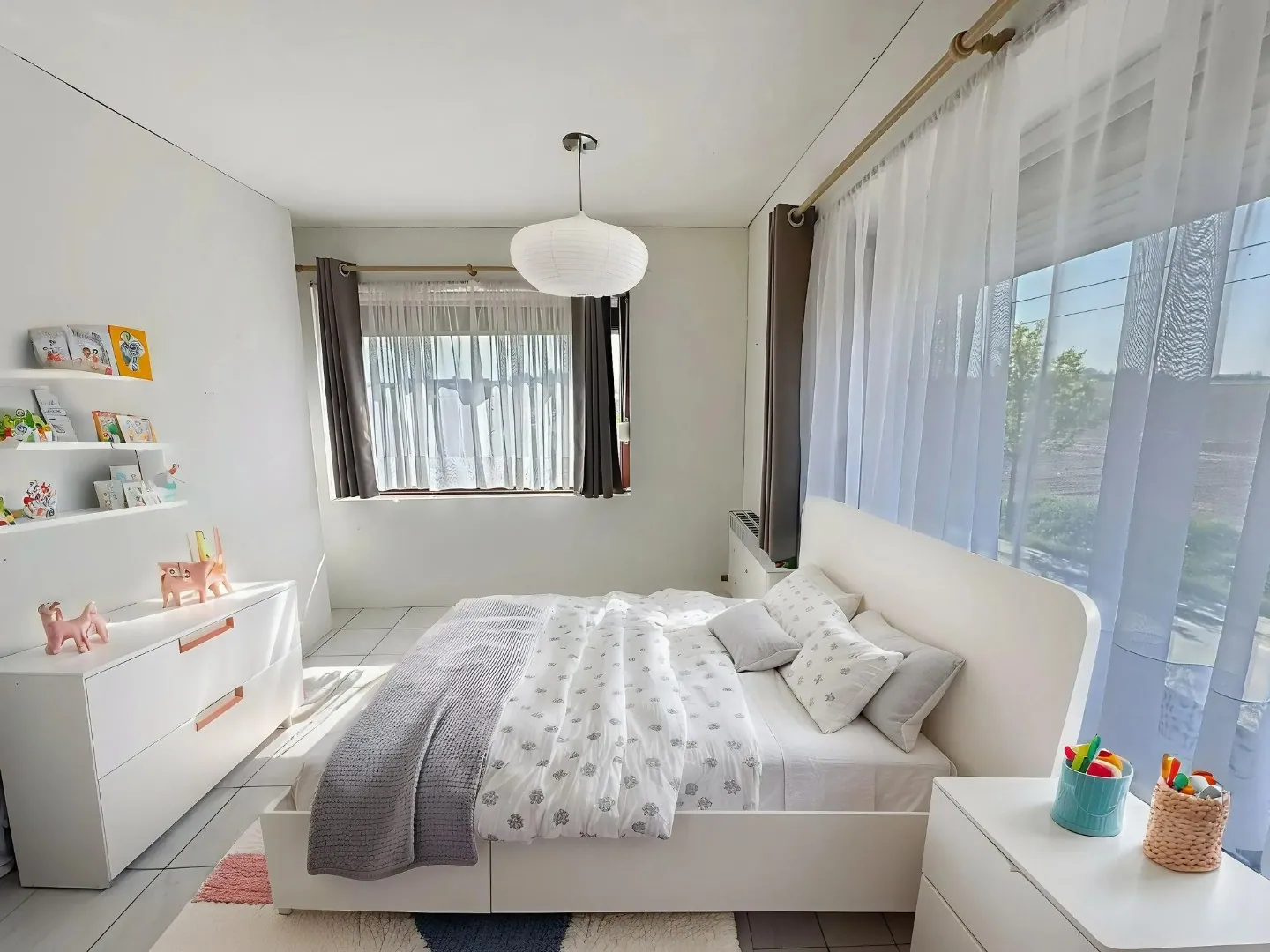 Op de bovenverdieping zijn er twee slaapkamers van normale grootte en is er één kleine kinderkamer.