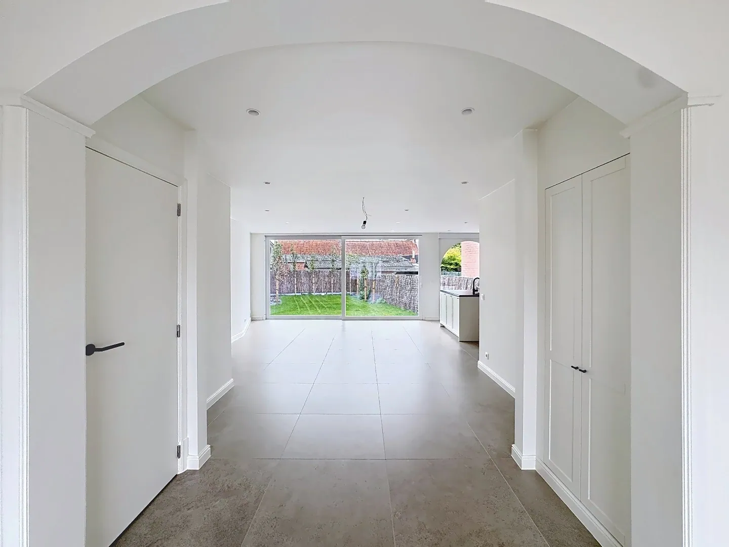 Aan de linkerzijde vindt u een gastentoilet en de toegang tot een verrassend ruime, droge kelder. Rechts van de keuken, die uitkijkt op een groene, intieme tuin, ontdekt u een douchekamer en daarachter een praktische garage.