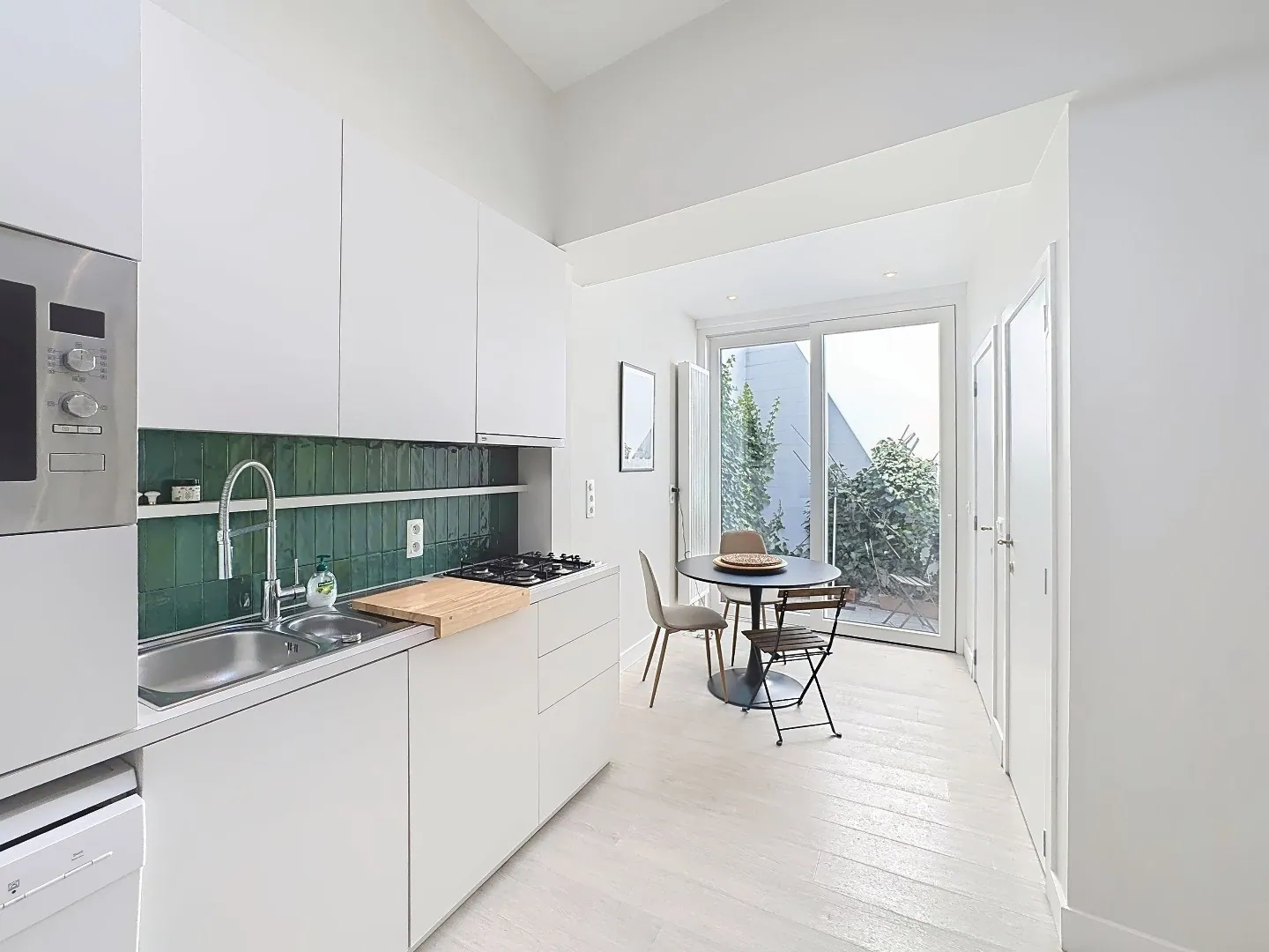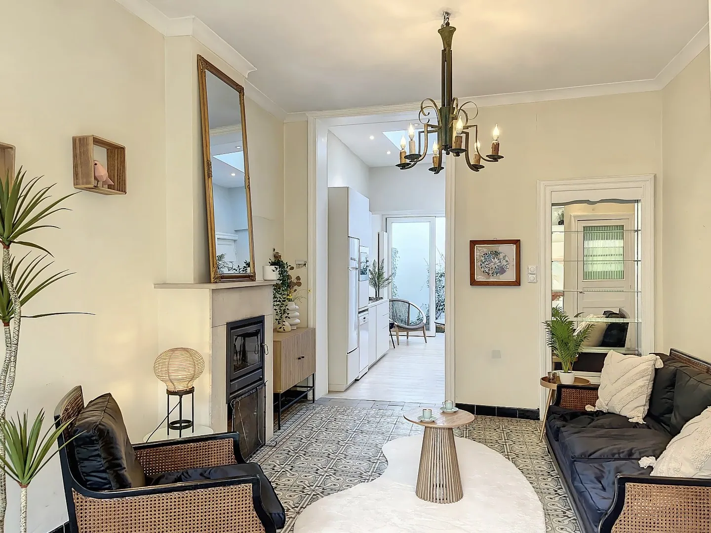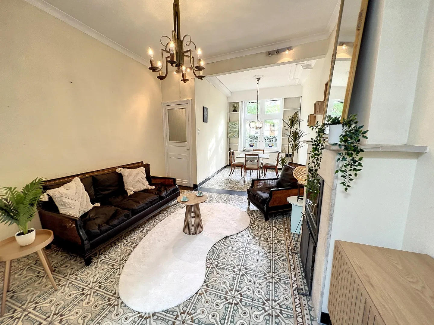 Achter de pittoreske gevel schuilt een woning met een ziel. De hoge plafonds en authentieke elementen creëren een warme, huiselijke sfeer. Vooraan verwelkomt een gezellige stadstuin je, terwijl je achteraan geniet van een intieme koer. Perfect voor een ochtendkoffie of een rustig moment met een boek.
