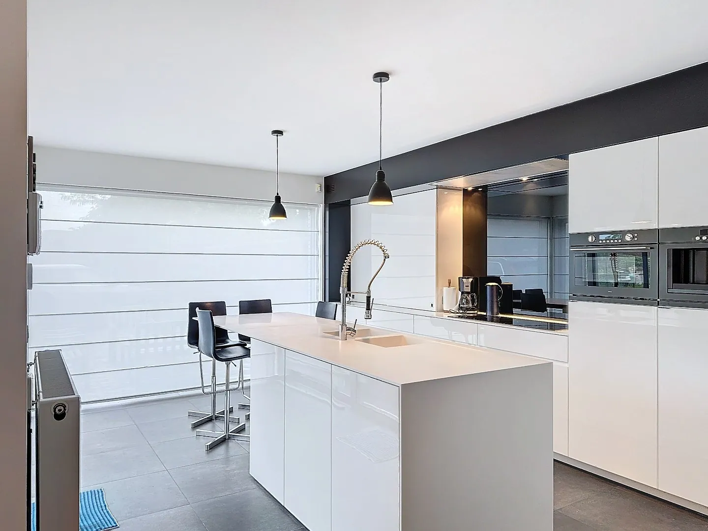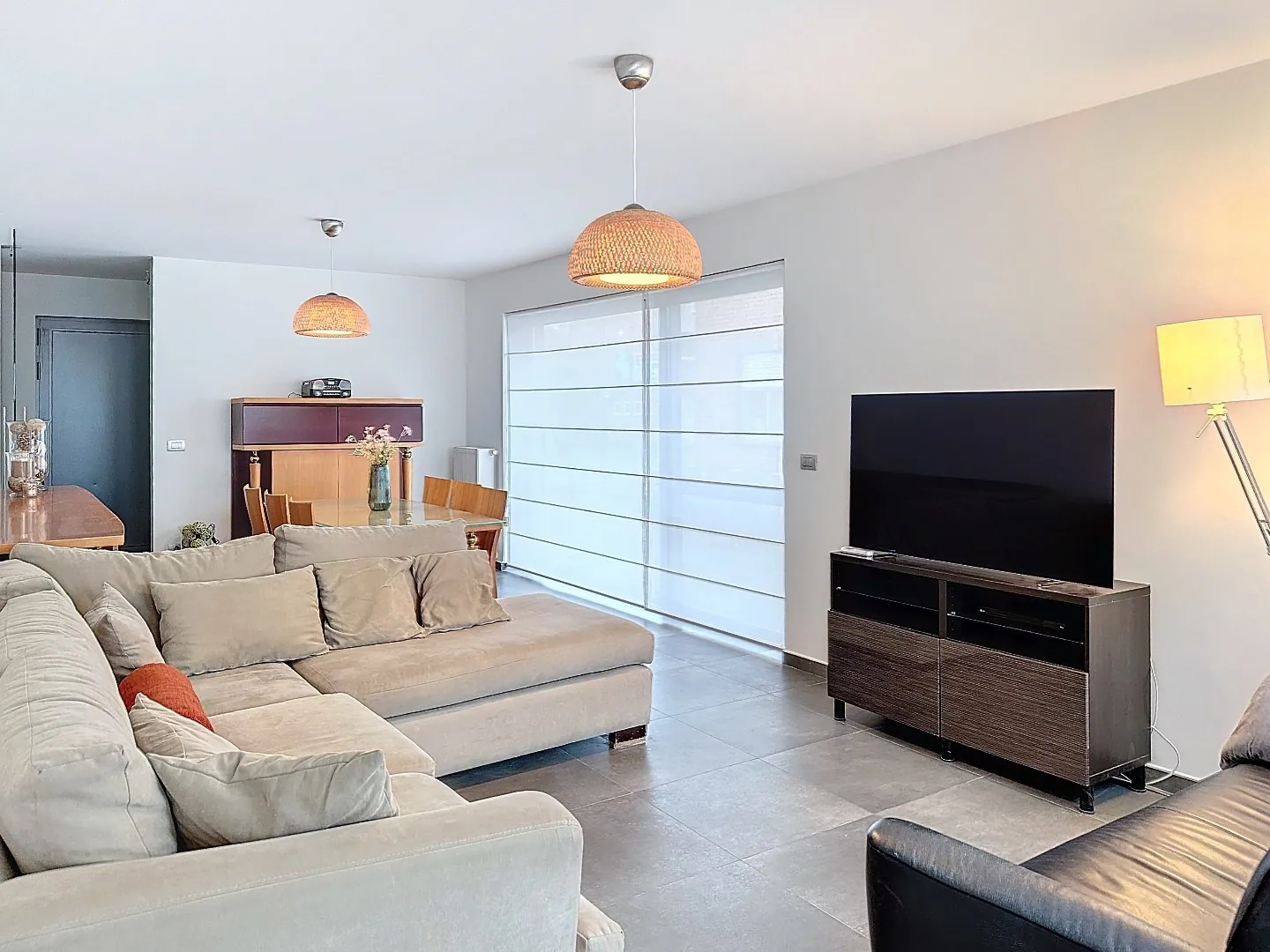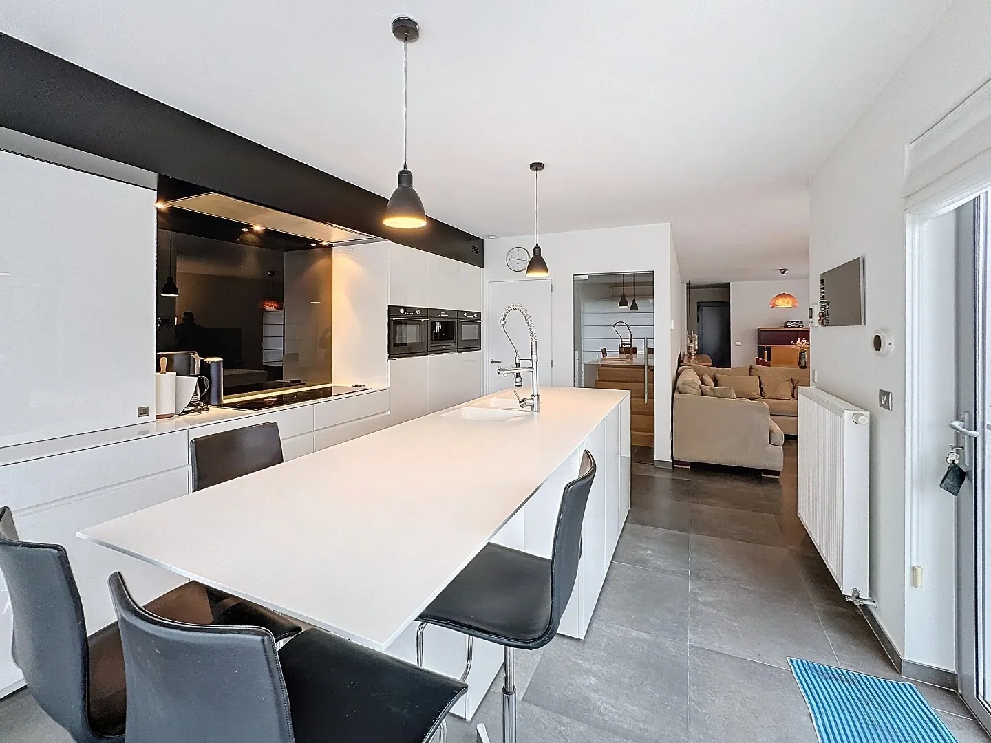 De leefruimte? Licht, luchtig en open. Dankzij grote raampartijen baadt de living in natuurlijk licht. Aansluitend vind je een volledig geïnstalleerde, moderne keuken met zicht op de tuin. Denk: strakke afwerking, voldoende werkruimte én een aparte berging met ingemaakte kasten — opberggemak verzekerd.