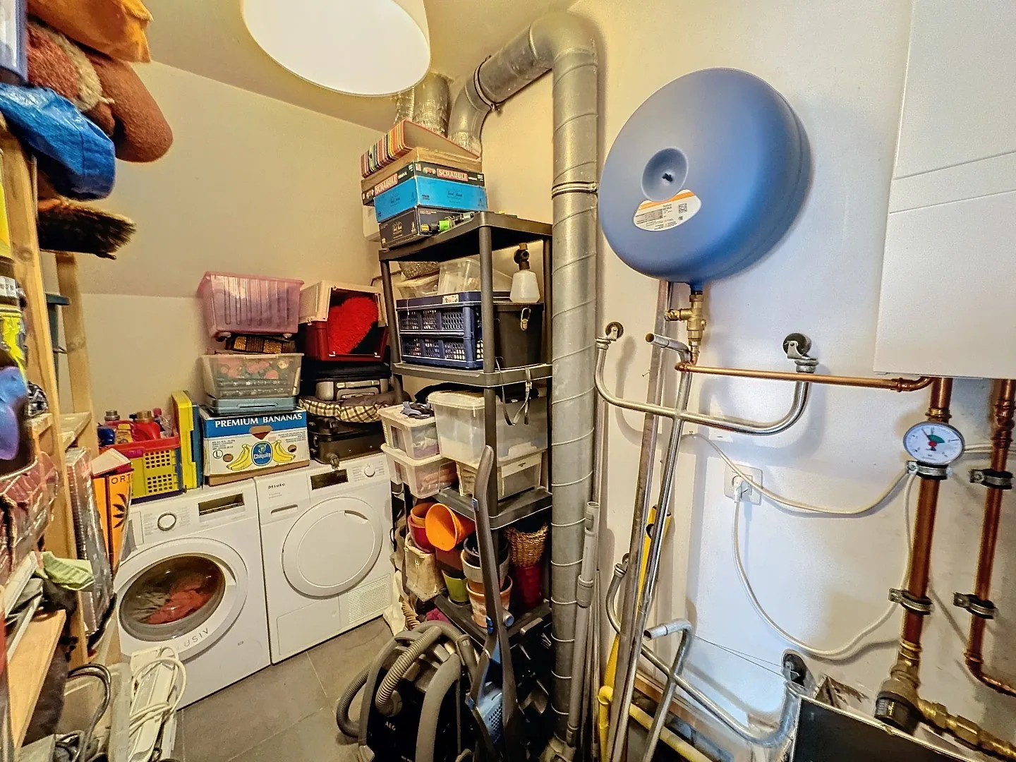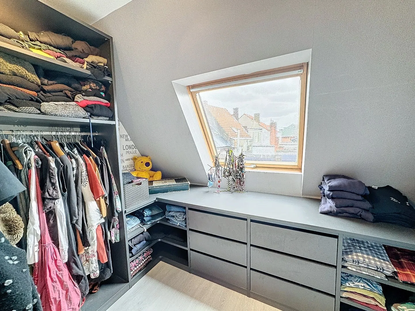 Boven is er een slaapkamer, een aparte kamer met dressing, een badkamer met douche en een berging.