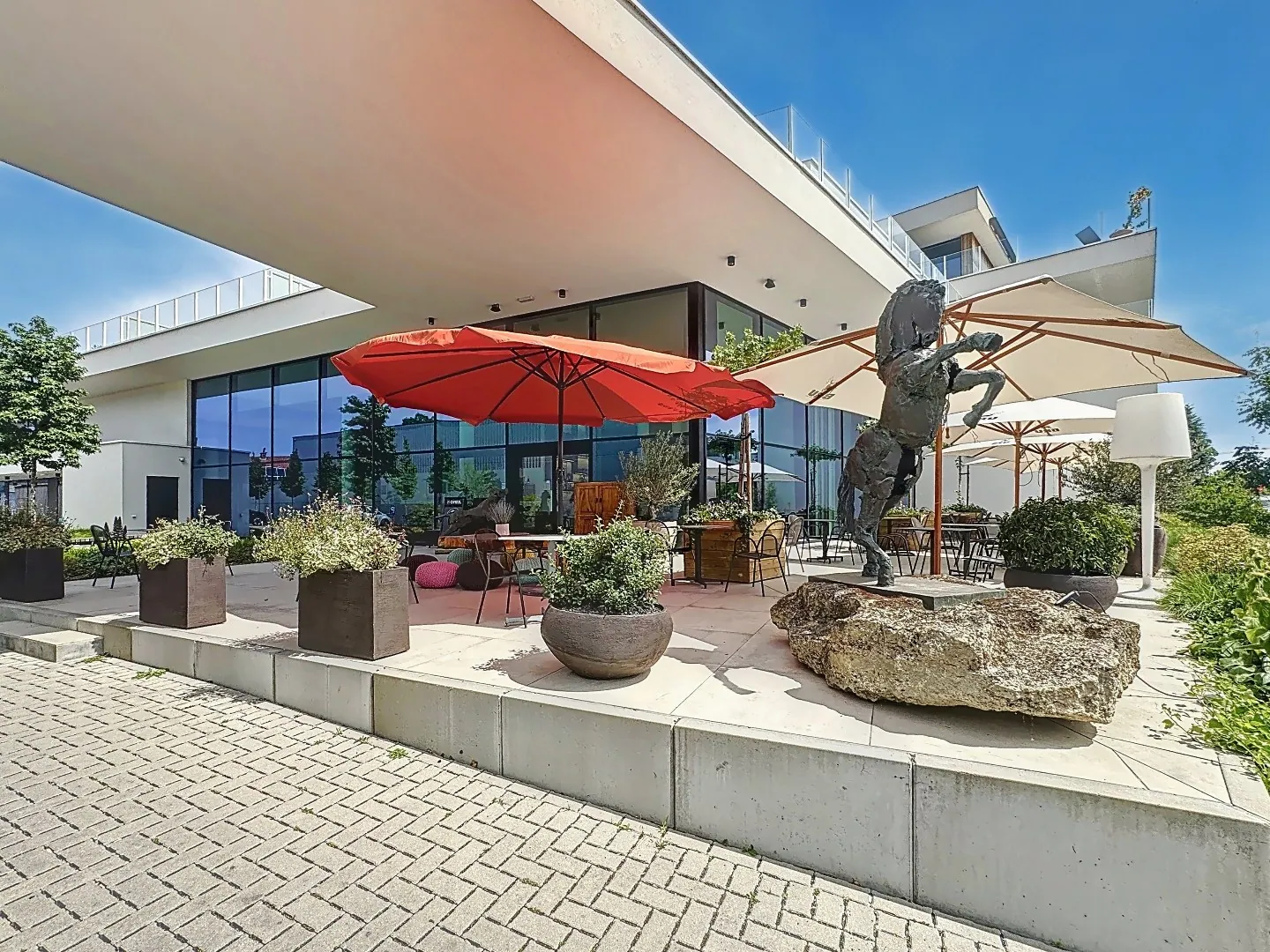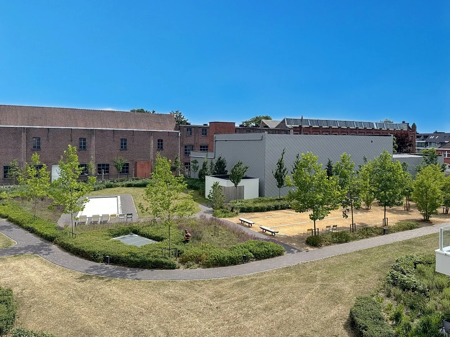 • Een ruime privéterras op het gelijkvloers met zicht op een prachtige binnentuin met zwembad en een petanqueplein in het groen– een plek om te mijmeren of een koffie te delen