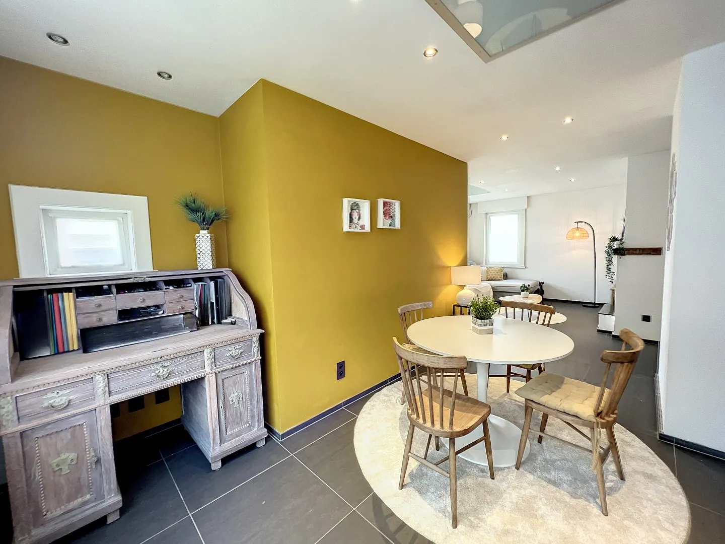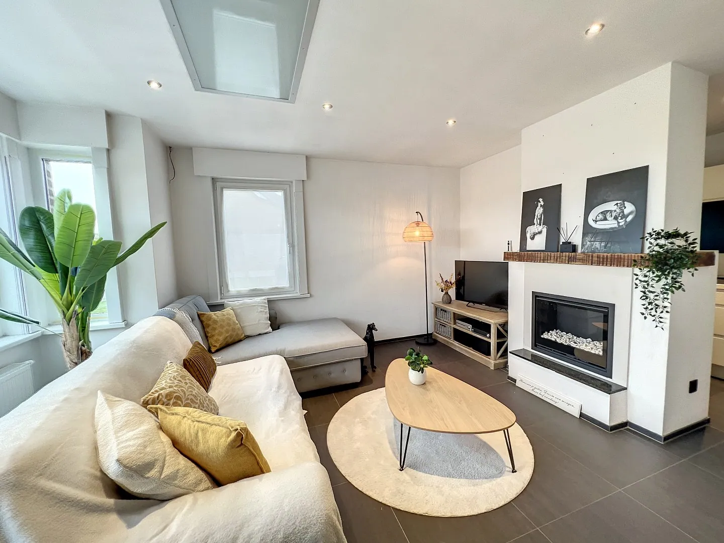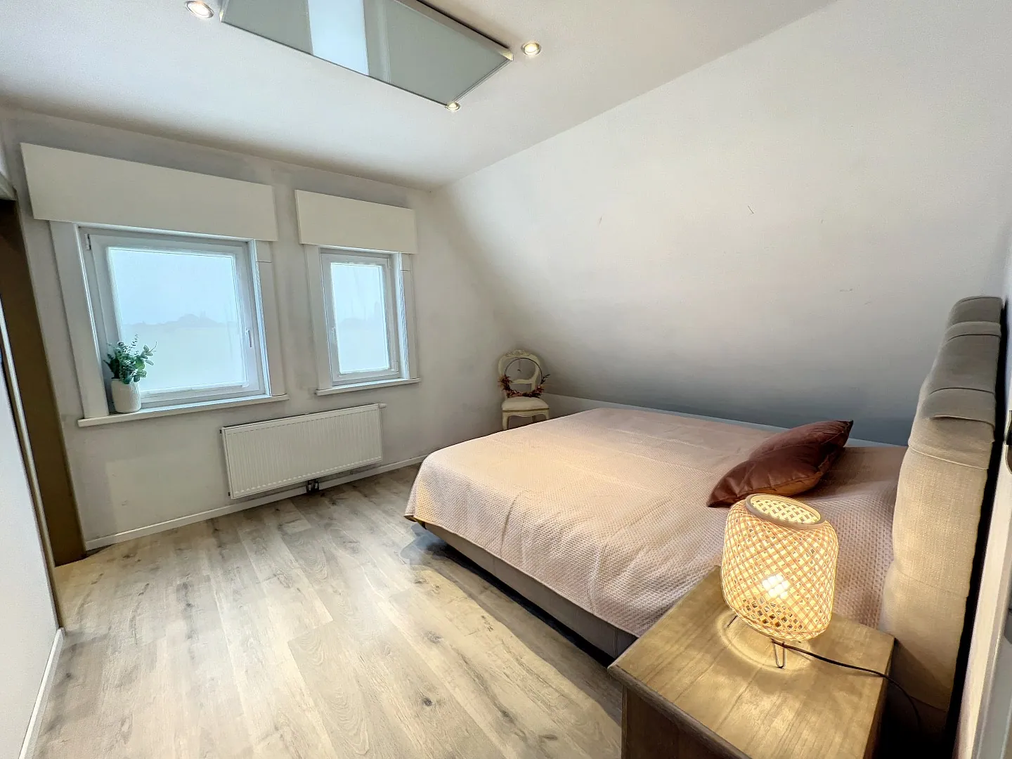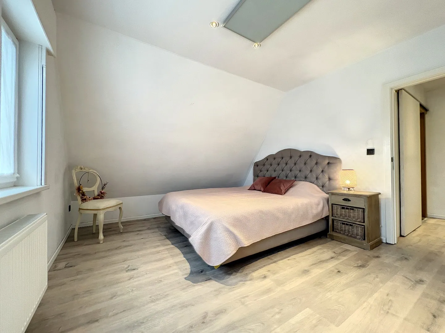 Via de hal kom je binnen in een gezellige living met salon (gashaard) en eetplaats. Aansluitend is er een charmante leefkeuken met berging die uitkijkt op een sfeervolle tuin met terras en tuinberging. Op de eerste verdieping is er een badkamer met ligbad, toilet en lavabomeubel. Daarnaast is er een eerste ruime slaapkamer met dressing en een tweede slaapkamer. De dakverdieping is via een vaste trap te bereiken en kan ingericht worden als derde slaapkamer.