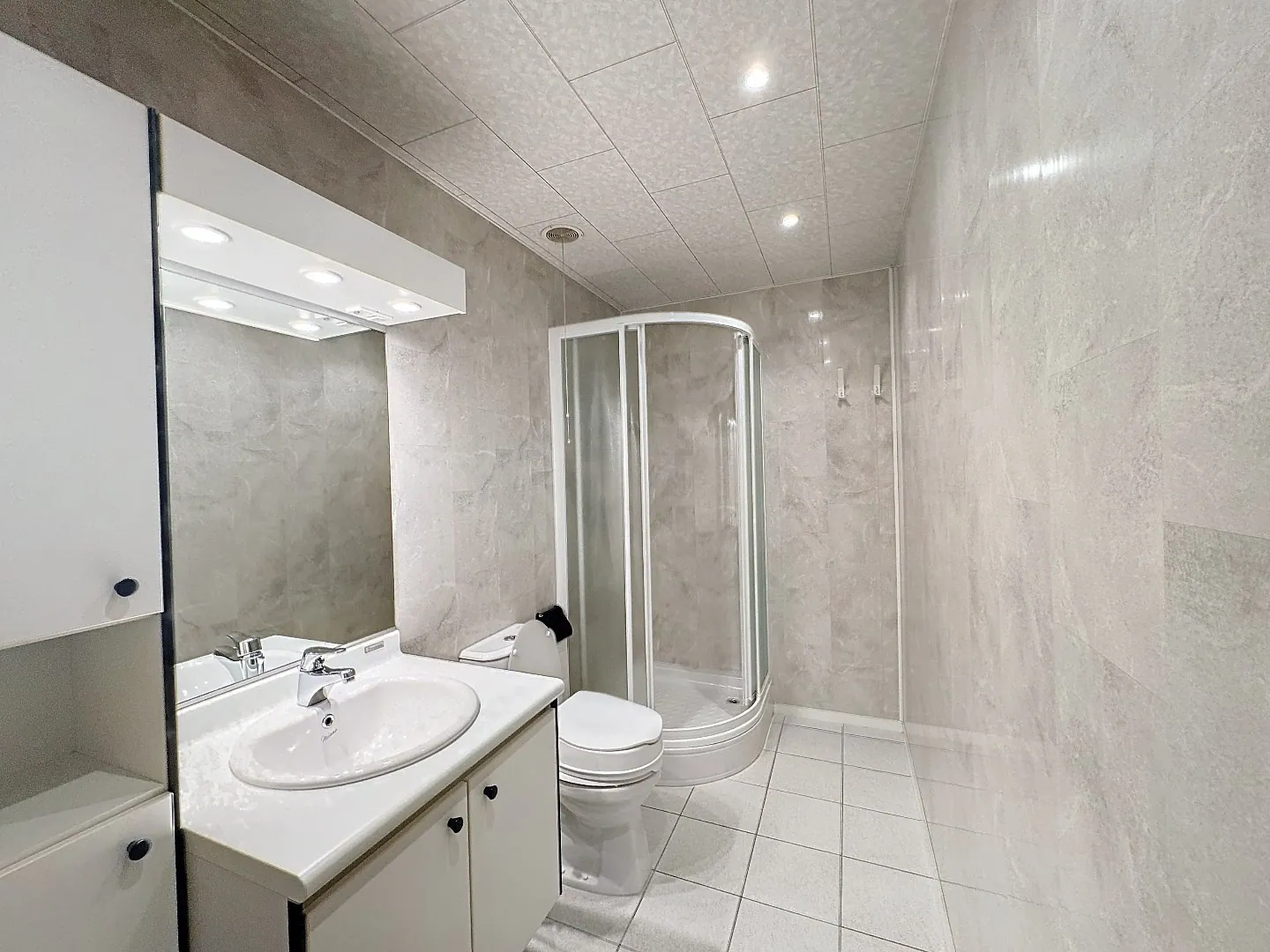 Boven zijn er drie ruime, lichtrijke slaapkamers met rechte muren, is er nog een badkamer met douche en lavabomeubel en een ruime zolder bereikbaar met een uitschuifbare trap.