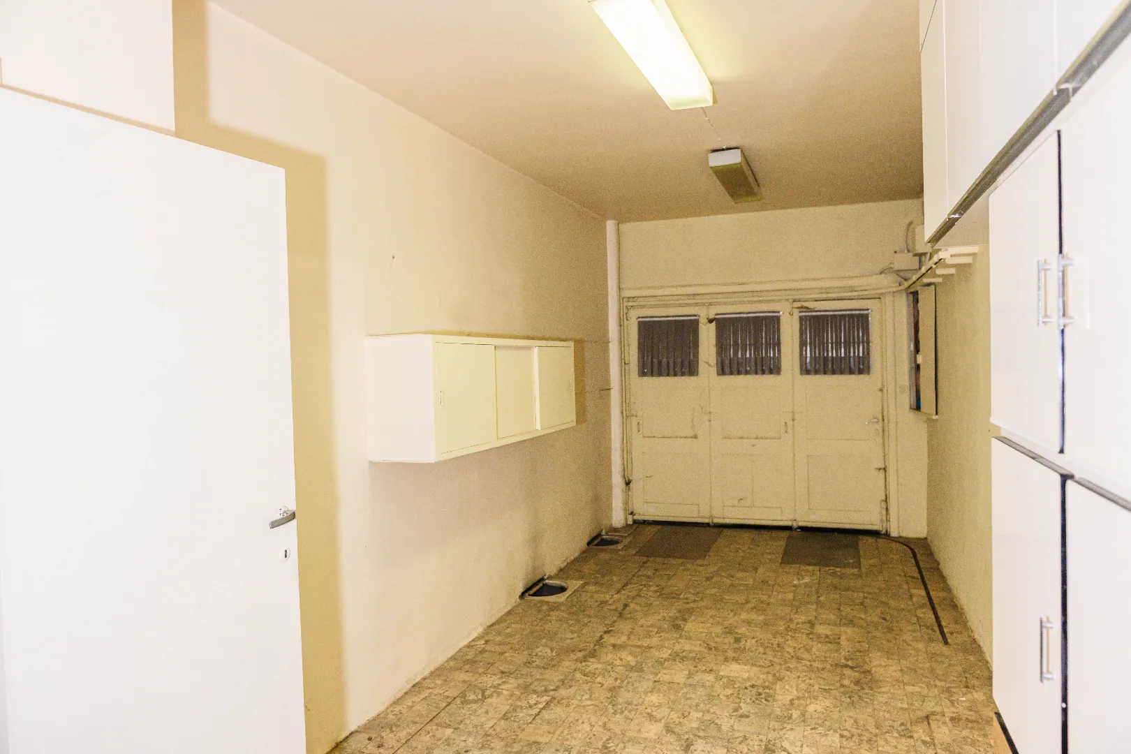 Links ga je binnen in de keuken met toegang tot een droge kelder. Daarnaast vind je een heel ruime garage.